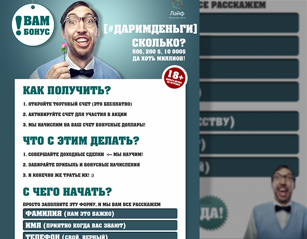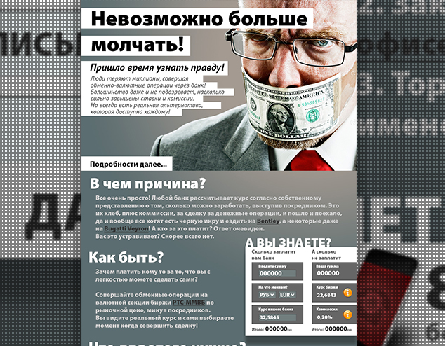Посадочная страница, для привлечения платежеспособного населения к новой услуге банка.